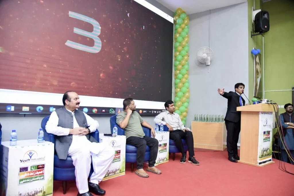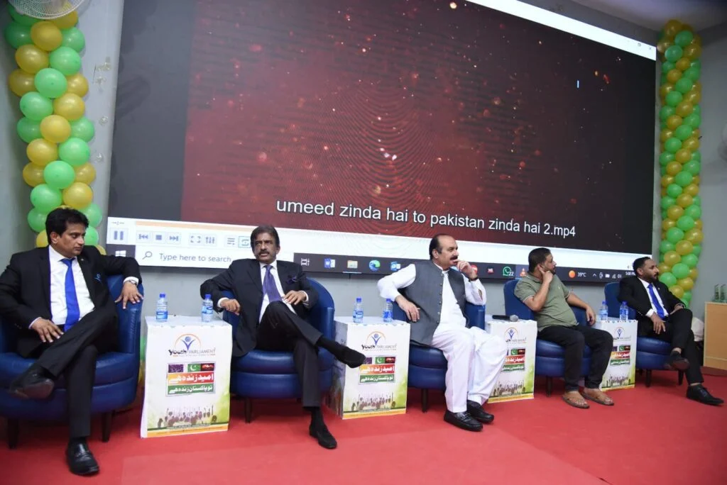 Youth Parliament organized the Youth Convention Lahore and the launch of its new campaign, “Umeed Zinda Hai, Tou Pakistan Zinda Hai” on September 23, 2024, at the iconic E-Library, Gaddafi Stadium, Lahore. Mr. Rana Mashood Ahmad Khan, Chairman of the Prime Minister’s Youth Program, graced the event as the Chief Guest. Other distinguished attendees included veteran actor Tauqeer Nasir, JDC Head Zafar Abbas, Usman Akhtar CEO of Brakley Learning, Shahbaz Siddique CEO of Web Excel, Dr. Shazia Nasir, and various other prominent personalities.