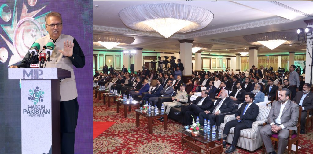 Pakistani society should prioritize ‘Made in Pakistan’ products over foreign alternatives as a means of promoting domestic manufacturing and reducing the nation’s imports bill. Karachi, August 26: President of Pakistan Dr. Arif Alvi address to the Inaugural Ceremony of Made in Pakistan Movement. Business Leaders and the Youth of Pakistan should take an active role in rectifying societal issues and advocating for local products. He said it is you and us who have failed, and the best export of Pakistan is you. Because the best belongings that Muslims have is ethics and morality so whatever business is done with the Uprightness or the quality of being conscientious is always successful and you will be appreciated by the world. So you are first Muslim then Pakistani start any initiative with honesty which should be the focus of any business. He said our Prophet (PBUH) always emphasized to earn your livelihood through business, the traders and industrialists should find their own way to success and which on the other hand will stabilize the economy of a country. Mr. Rizwan Jaffar Founder & Chairman MIP Group & Made in Pakistan Movement expressed his gratitude to the President of Pakistan for accepting the Invitation and graced the occasion as Chief Guest. In his speech he said today we are officially Inaugurating the Made in Pakistan Movement. Promotion of our local products was always in our mind but the work that was supposed to be done in last 75 years was never initiated properly and the awareness that should have been provided to the nation was never given so through this movement awareness will be provided to the public not only in Pakistan but globally to buy, Made in Pakistán products. Mr. Zubair Motiwala CEO TDAP showed his concerns over the shortage of gas, electricity and water which has badly affected the exports and industries of Pakistan. The huge amount of electricity cost has also created a disturbing situation for the local manufacturers and general public. Therefore Govt. help and support is required for the export sector and for better.productions and the products that we are importing can also be Made in Pakistan. Mr. Tariq Yousuf President KCCI addressing the audience said that on one hand the economic matters and on the other hand the uncertain political situation and the dollar rate have all caused uncertainty in the affairs of traders and investors. In the Made in Pakistan. Inaugural Ceremony, Recognition Awards were given to the following: M. Farhan Hanif, Irfan Wahid, Asif Ismail, Khalid Jamil Shamsi, Nadeem Anjum Khan, Commander (Rtd) Muhammad Zakir, Engr. Danish Bin Rauf, Shaikh Imtiaz Hussain, Usman Akhter, Rana Waheed, Muhammad Saleem, Atif Iqbal, Zahoor Ahmed, Fahad Ahsan, Munsub Abrar, Mrs. Muhammad Ali, Salman Aslam, Ahsan Mehanti, Muhammad Imran Taj, Dilawar Ali, Nasir Raza Zaidi, Muhammad Asif Khan, Sameer Shamsi, Dr Hina Anis, Muhammad Adnan, Atif Bari, Saifullah, Iqbal Yousuf Shaikh, Dr. Fareed Iqbal Qureshi, Dr. Mirza Ikhtiar Baig, Muhammad Hanif Gohar, Tariq Yousuf, Zubair Motiwala & M. Rizwan Jaffar.